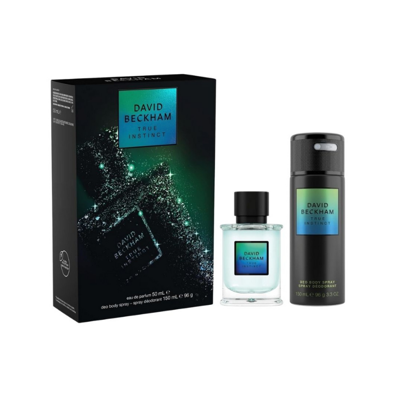 The David Beckham True Instinct Giftset for Him includes a 50ml Eau de Parfum and 150ml Deodorant Body Spray. This captivating fragrance blends fresh green, woody, and ambery notes, opening with vibrant pine needles before revealing a warm heart of cedarwood and a seductive base of earthy vetiver. Inspired by David Beckham’s confidence and free spirit, True Instinct evokes a liberating sense of freedom and masculinity — perfect for the modern man.
